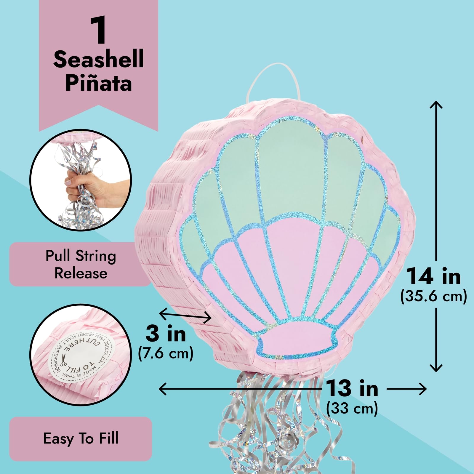 - Seashell Celebration: Enhance your mermaid party with the Blue Panda Mermaid Pull String Seashell Pinata, a captivating centerpiece. This shell pinata complements any under sea party decoration with its vibrant aqua and pink hues