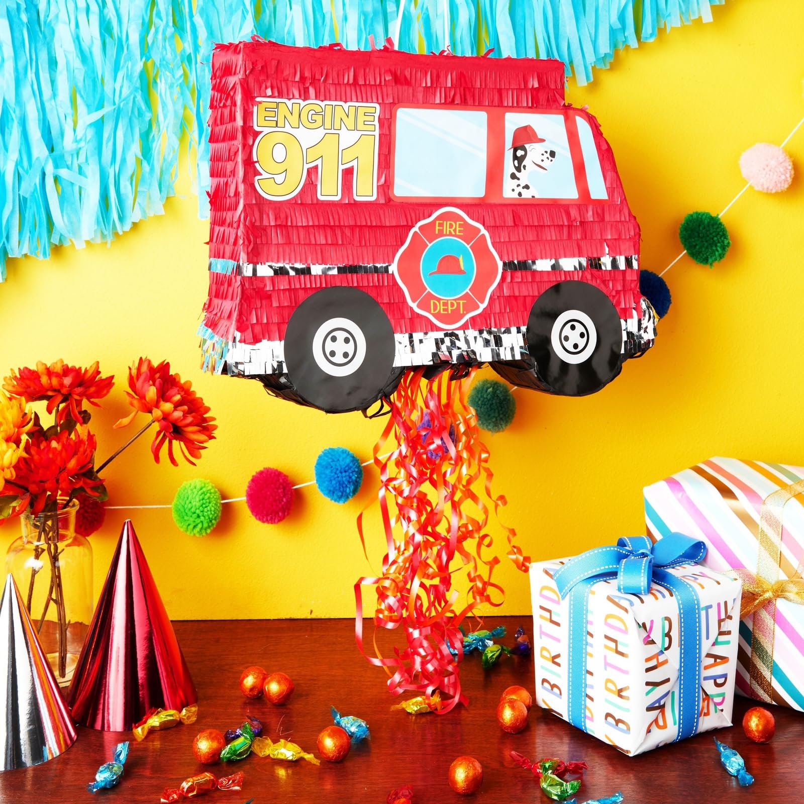 - Durable and Cheerful Design: Constructed from sturdy corrugated paper, this pull string firetruck pinata promises longevity and excitement throughout your event. Its vivid colors and firefighter theme make it a standout addition to any child's birthday celebration