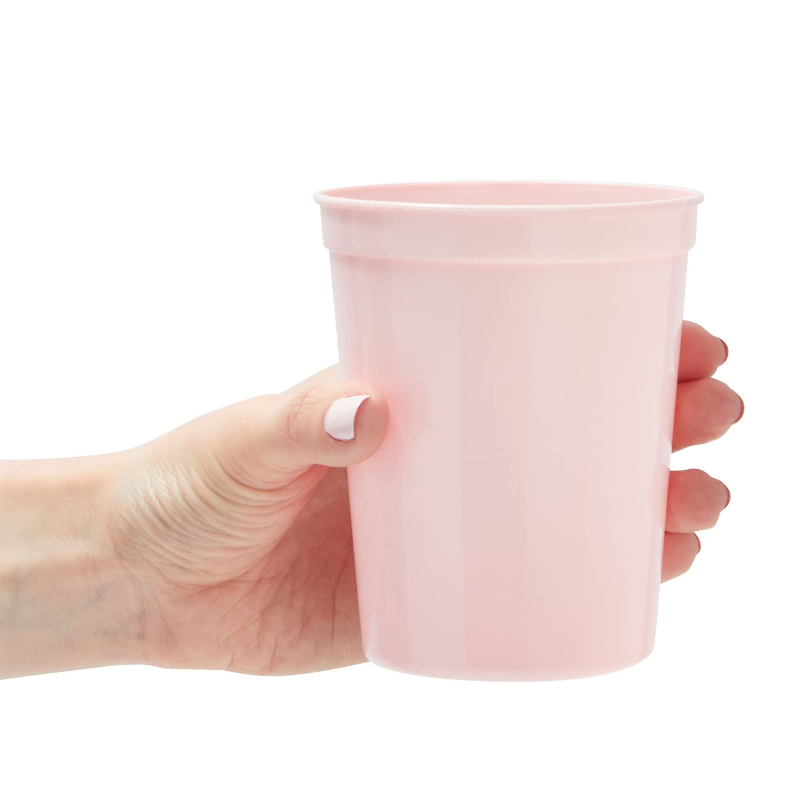 BLUE PANDA Reusable Plastic Cups - 16 Oz, Light Pink, 24 Count - Light Pink Stadium Tumblers & Pastel Stadium Cups - Washable Bulk Drinkware
