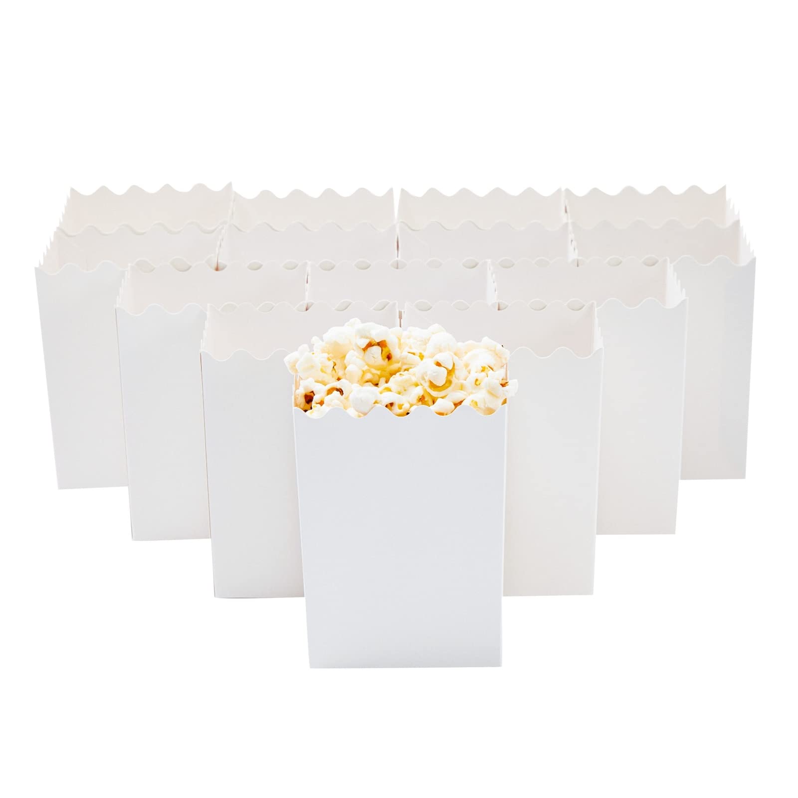 - Elegant and Versatile: The Juvale 100 Pack Mini Popcorn Boxes, crafted from durable cardstock, offer an elegant solution for serving snacks. These white popcorn boxes are ideal for elevating movie decorations and picnic presentations alike